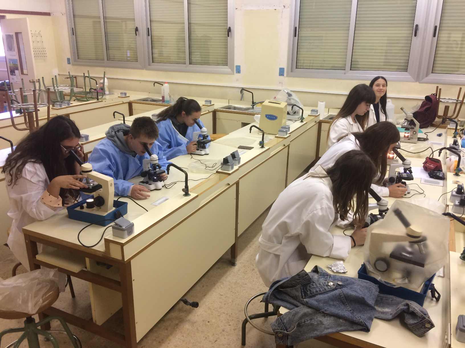 Sirva de ejemplo los alumnos del grupo de Anatomía Aplicada de 1º de Bachillerato científico visualizando al microscopio sus propias células del epitelio bucal, después de hacer ellos mismos las preparaciones: extracción, tinción y montaje. Aprendizaje significativo, ¡la letra, con práctica entra!. |
